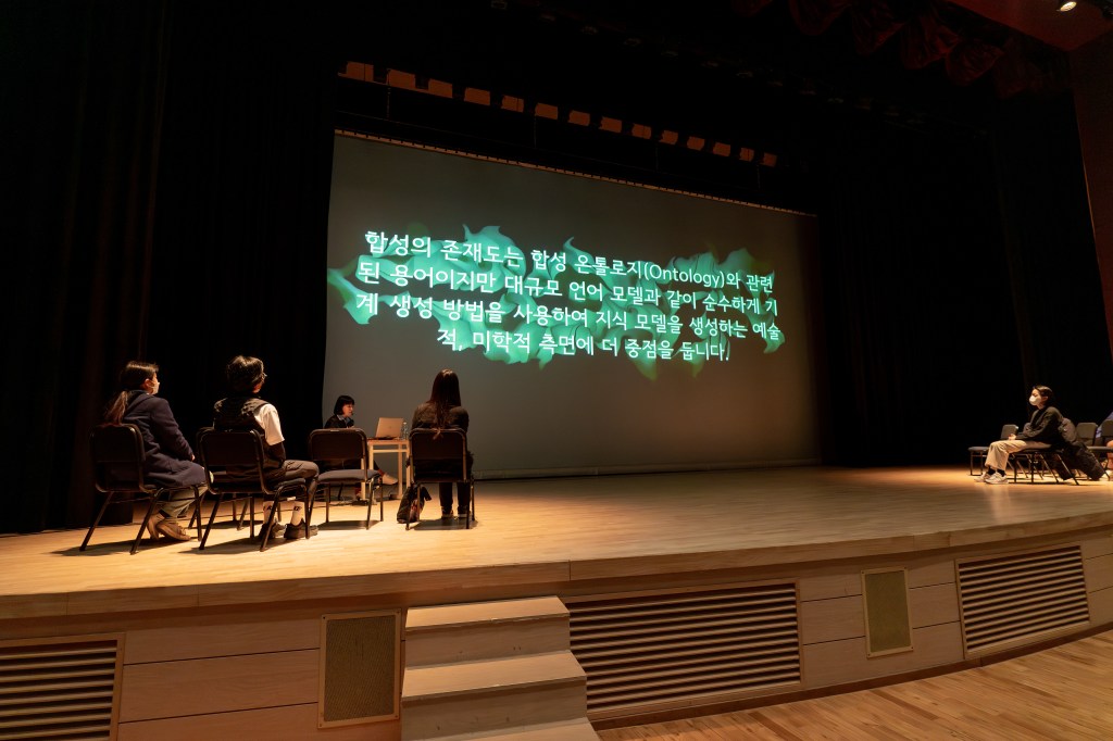 작품 <인간 물질론과 합성의 존재도>는 2024년 3월 13~15일 금나래아트홀 공연장에서 만나 볼 수 있으며 작가는 14일, 15일, 총 4회의 렉처 퍼포먼스를 진행합니다. 렉처 퍼포먼스에서는 음•양력 주기 정보를 통해 물질의 관계성을 설명하는 사변 이론인 <인간 물질론>과 인공지능의 환각적 이미지 생성을 위한 즉흥적 프롬프트와 합성의 존재도를 소개합니다. QR코드로 취합된 참여자의 생년, 월, 일, 시의 정보는 하나의 물질 데이터 세트로 인공지능의 프롬프트(Prompt)로 활용되며 이를 통해 생성된 개인의 초상이자 존재하지 않는 이미지를 경험함으로써 인간의 시선이 만들어낸 세계가 아닌 물질의 세계 속 인간 듣기의 방법론을 시도하고자 합니다.