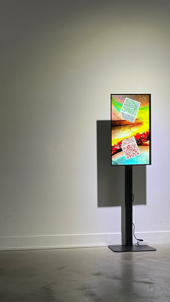 The Human Materialism and Synthetic Ontography, Live Projection, Generated AI Image, Perpetual Calendar data, QR Code, 2024