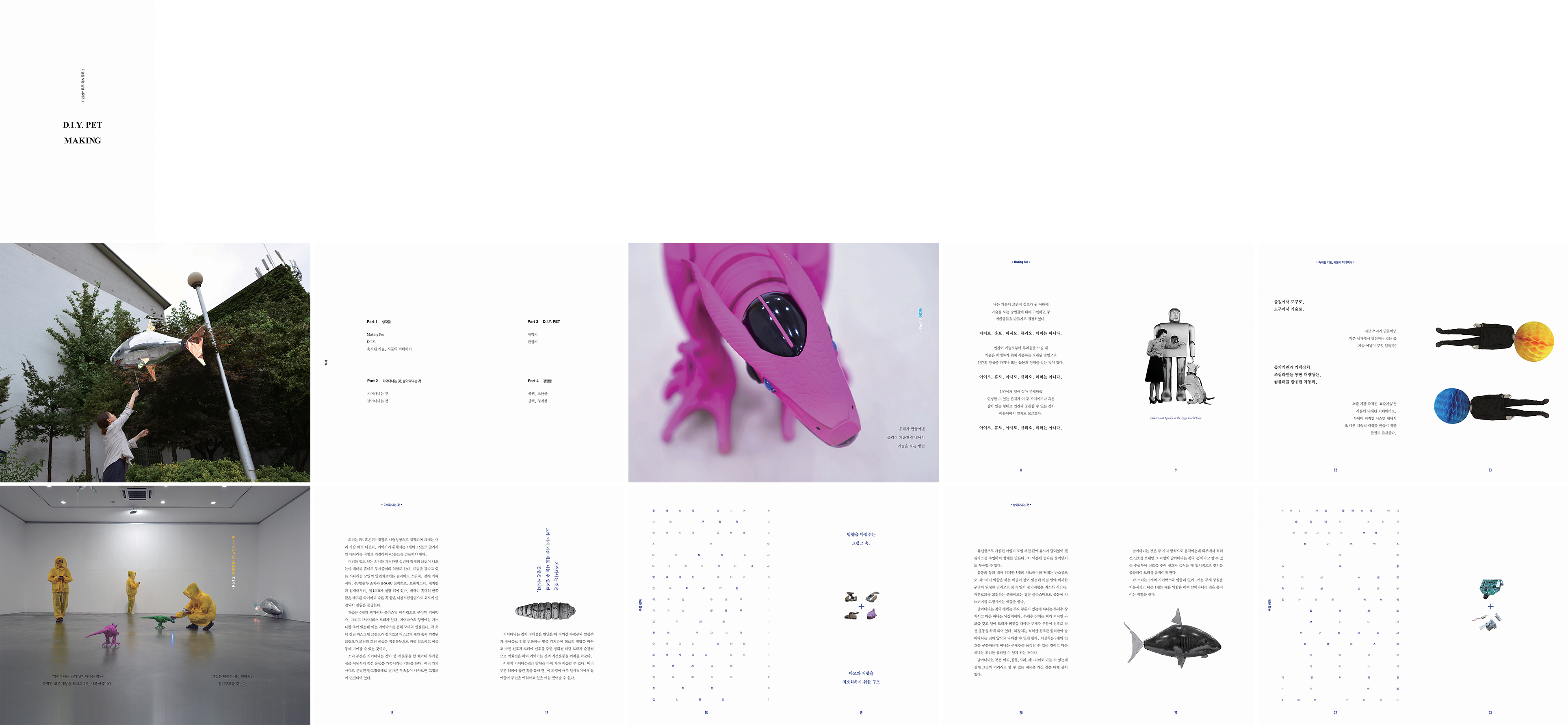 기술을 보는 방법 시리즈 1 <D.I.Y PET MAKING>에서 작가는 디지털 패브리케이션을 통해 산업시대의 표준기술이 디지털 플랫폼 내에서 수용되는 방식에 흥미를 느낀다. 이것이 새로운 시각적 형태로 구체화 될 때 발생되는 변칙들을 나열한다. 기어 다니는 것과 날아 다니는 것은 대량생산방식의 상품들이 오랜 기간 축적한 ‘표준기술’을 해킹하는 방법론을 취하여 제작된 인공 애완동물이다. 개인에게 D.I.Y 펫을 생산하게 함으로서 기술이 일상에서 수용되는 일련의 방식을 제시한다.