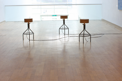 New media와 Old media, 그 길항의 여정 1부 Exhibitions 2009년 4월 11일 – 6월 13일영은 미술관, 경기 Merry-go-Sound, Encoder, MAX5, Speaker, Customized Chiar, 30 x 30 x 70 (cm), 2009