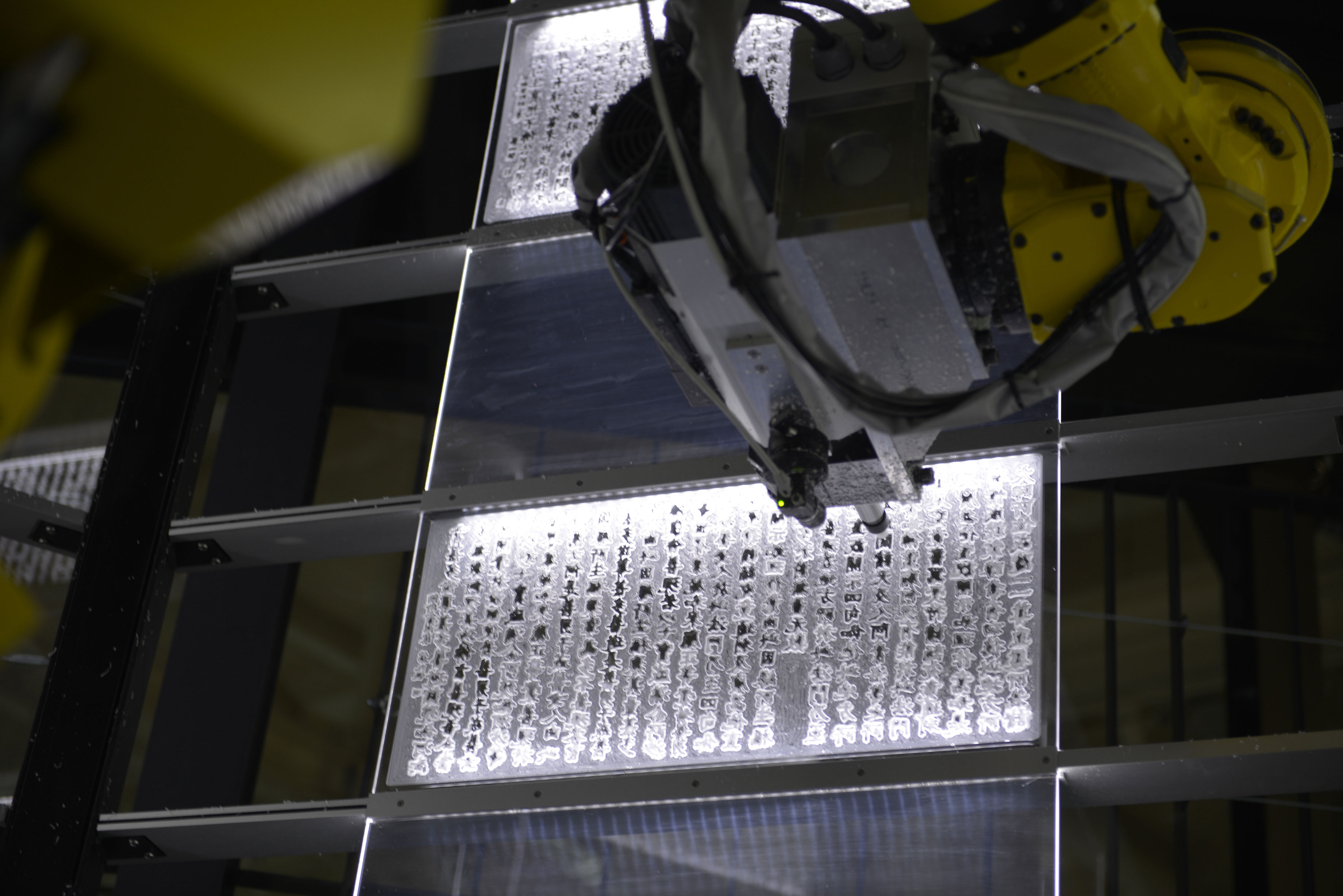 Asia Culture Complex worked with Research Institute of Korea Tripitaka to carry out the project <21st c. Tripitaka Koreana>. The name of Transmedialab is PITAKA, a robot that engraves the Buddha’s words. Transforming the tripitaka’s rubbing image produced in the Korea Dynasty into computer coordinate data, enabling physical processing through industrial robots. PITAKA is an icon personified as a pilgrim beyond the perception of a robot-machine and becomes a media outlet through engraving. PITAKA’s performance produces a new type of Pitaka, which processes and transforms historical artifacts that exist as symbolic aura into another medium.