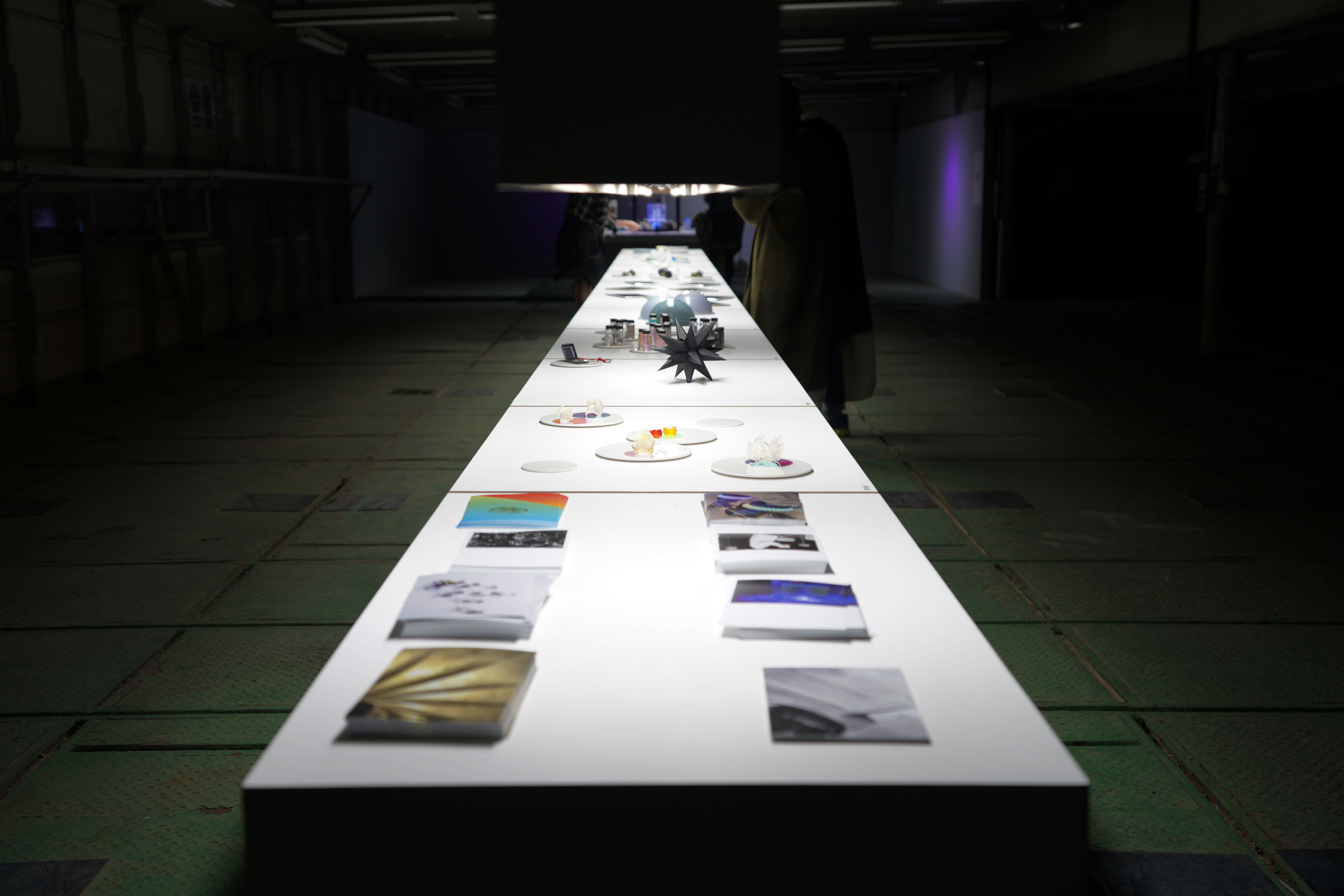 Material Research Lab(이하 엠알랩)은 미디어를 통해 확장된 오픈소스 및 보편 기술을 활용하여 물질의 다양한 측면을 실험, 기록, 관찰하고 이를 통해 얻어지는 새로운 시각성과 영감을 믿는 예술가들로 구성되었다. 제로원 크리에이터 8인(양숙현, 닥드정, 후니다 킴, 조호영, 이장원, 최진훈, 김성백, 현박)으로 구성된 이들의 관심사는 하이드로겔, 자성유체, 초소수성물질, 세라믹 서킷, 전도성 안료, 빛, 탄소안료, 플루오르화케톤 등 가양각색이다. 다양한 물질들을 아우르는 소재에 대한 호기심은 제로원 스타트업 M.O.P(대표: 최형일)과의 지속적인 커뮤니케이션을 가능하게 하여 크리에이터와 스타트업의 협업 구조를 만들어 내기도 하였다. <실험식탁>은 제로원 크리에이터로 구성된 엠알랩의 리서치 과정을 만찬의 형식으로 보여주고자 한다. 각 크리에이터가 연구하고 실험한 유닛은 자신만의 어플리케이션을 통해 플레이팅 되어 실험식탁에 놓이게 된다.